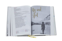 Auf den 32 Zusatzseiten dieser Ausgabe sind englische Sprüche und Bibelverse abgebildet, die zum Entdecken, Verweilen und Nachdenken einladen. Klassische Schwarz-Weiß-Aufnahmen, goldene Akzente, ausdrucksstarke Schrift.