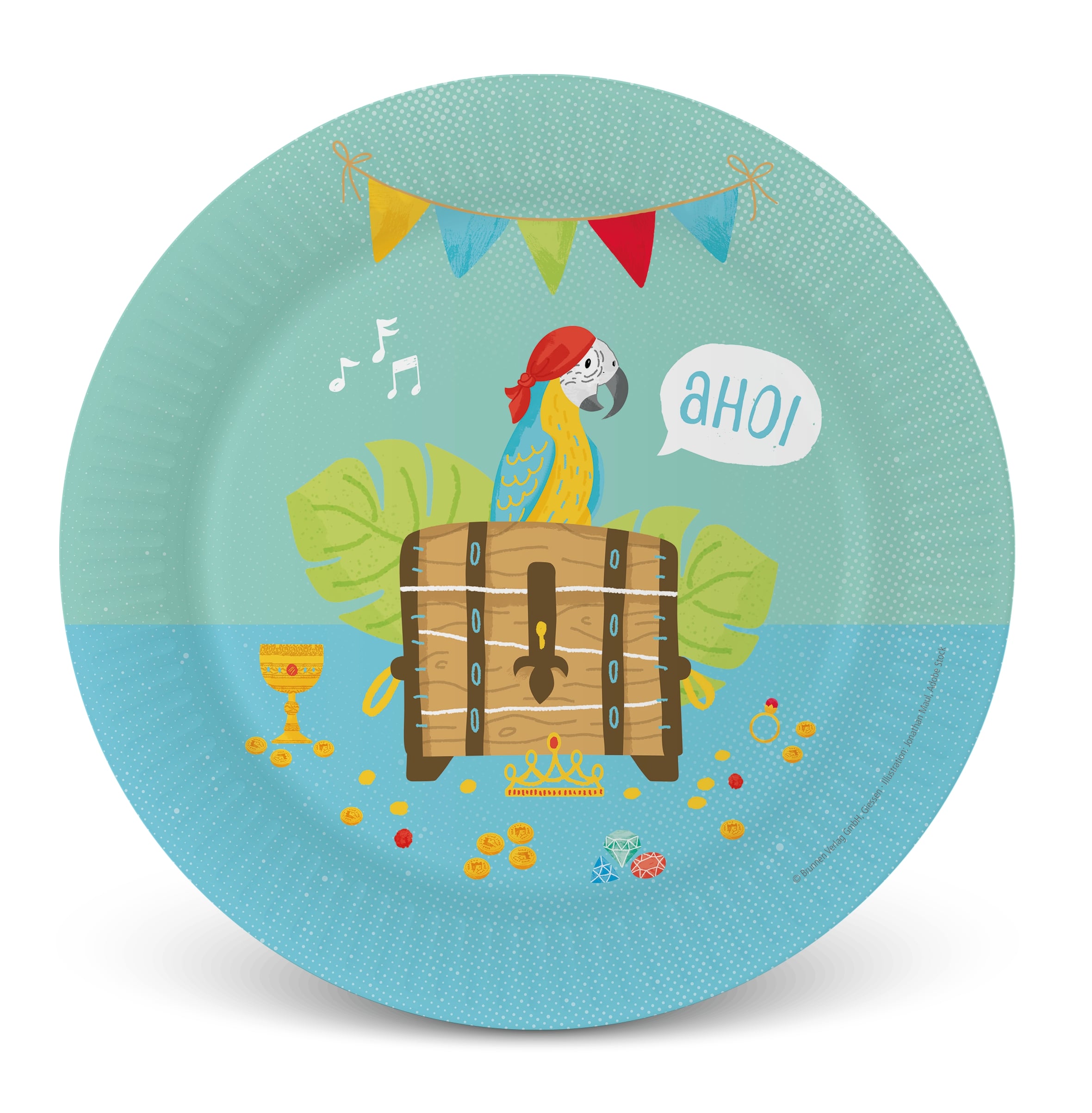 Zur einer richtigen Piraten-Party gehört natürlich auch die passende Tischdeko. Mit unserem liebevoll illustrierten Papp-Geschirr wird der Geburtstag der Kleinen zu einer runden Sache. Das Set besteht aus 10 Tellern. Die Teller haben einen Durchmesser von 230 mm. Sie werden in Deutschland gefertigt und sind plastikfrei.