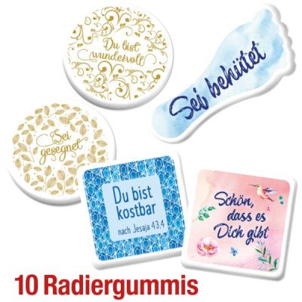 10 Radiergummis im Spar-Paket.
