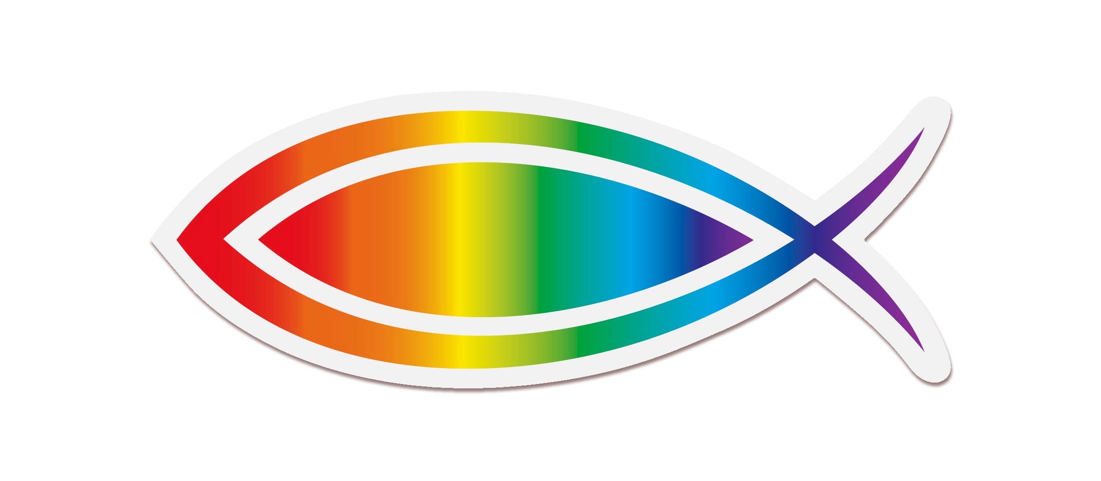 Ichthys-Fisch in Regenbogenfarben auf weißer PV-Folie, 12,5 x 4,5 cm