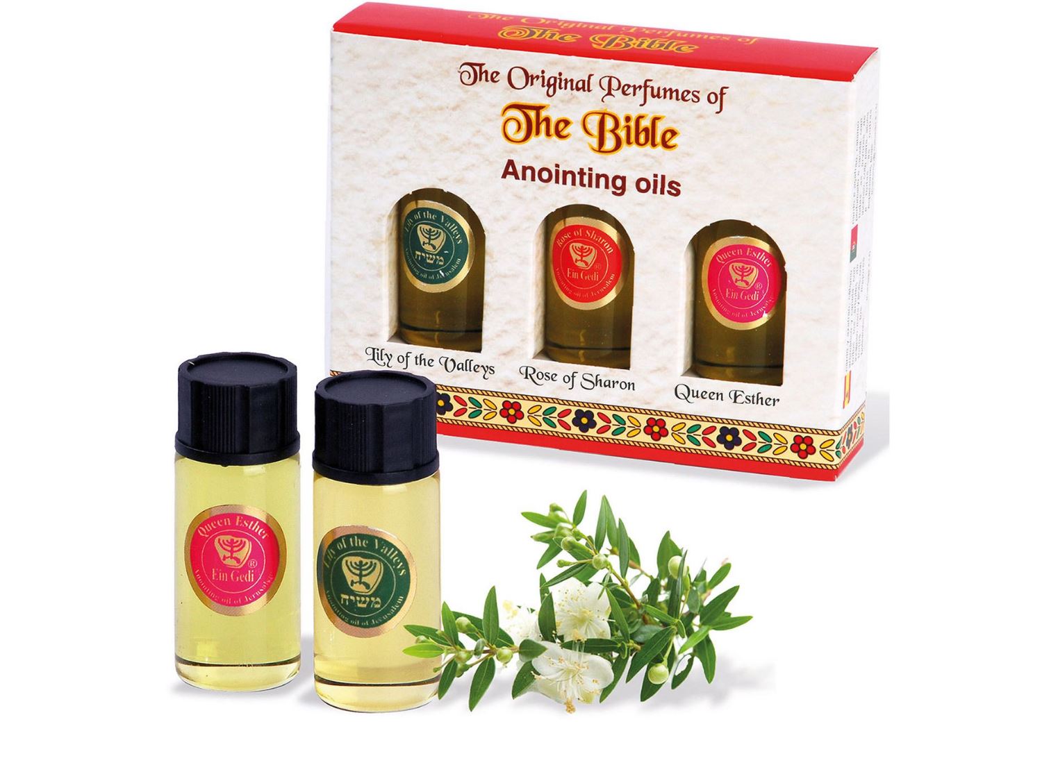 Die biblischen Salben von Ein Gedi werden nach Tradition der Parfüms aus der biblischen Zeit hergestellt. Basierend auf nativem Olivenöl werden biblische Düfte von Gewürzen, Pflanzen und Blumen hinzugefügt.