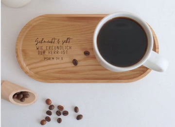 Dieses elegante Tablett aus hochwertigem Eichenholz ist nicht nur ein praktisches Accessoire, sondern trägt auch eine wunderbare Botschaft. Die Gravur "Schmeckt und seht, wie freundlich der Herr ist - Psalm 34,9" erinnert uns an die Güte und Freundlichkeit Gottes, die wir in unserem Leben erfahren dürfen. Es ist ein besonderes Geschenk, das göttliche Liebe und Vertrauen in Gottes Wohlwollen verkörpert und jedem Anlass eine tiefere Bedeutung verleiht.