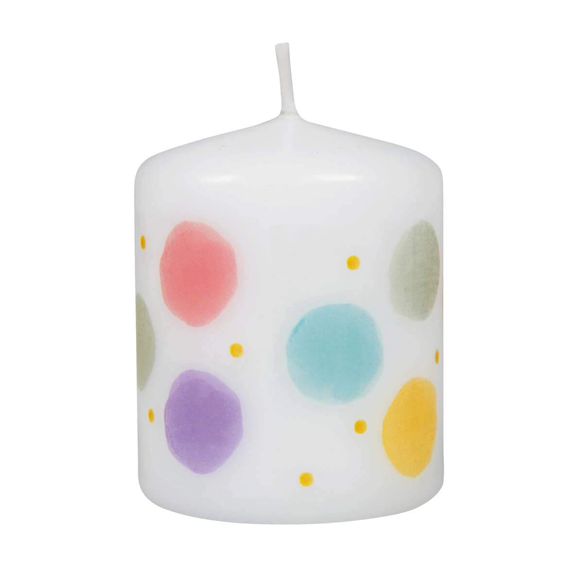 Hübsche kleine Tischkerze mit Punkte-Motiv und Text: Schön, dass es Dich gibt