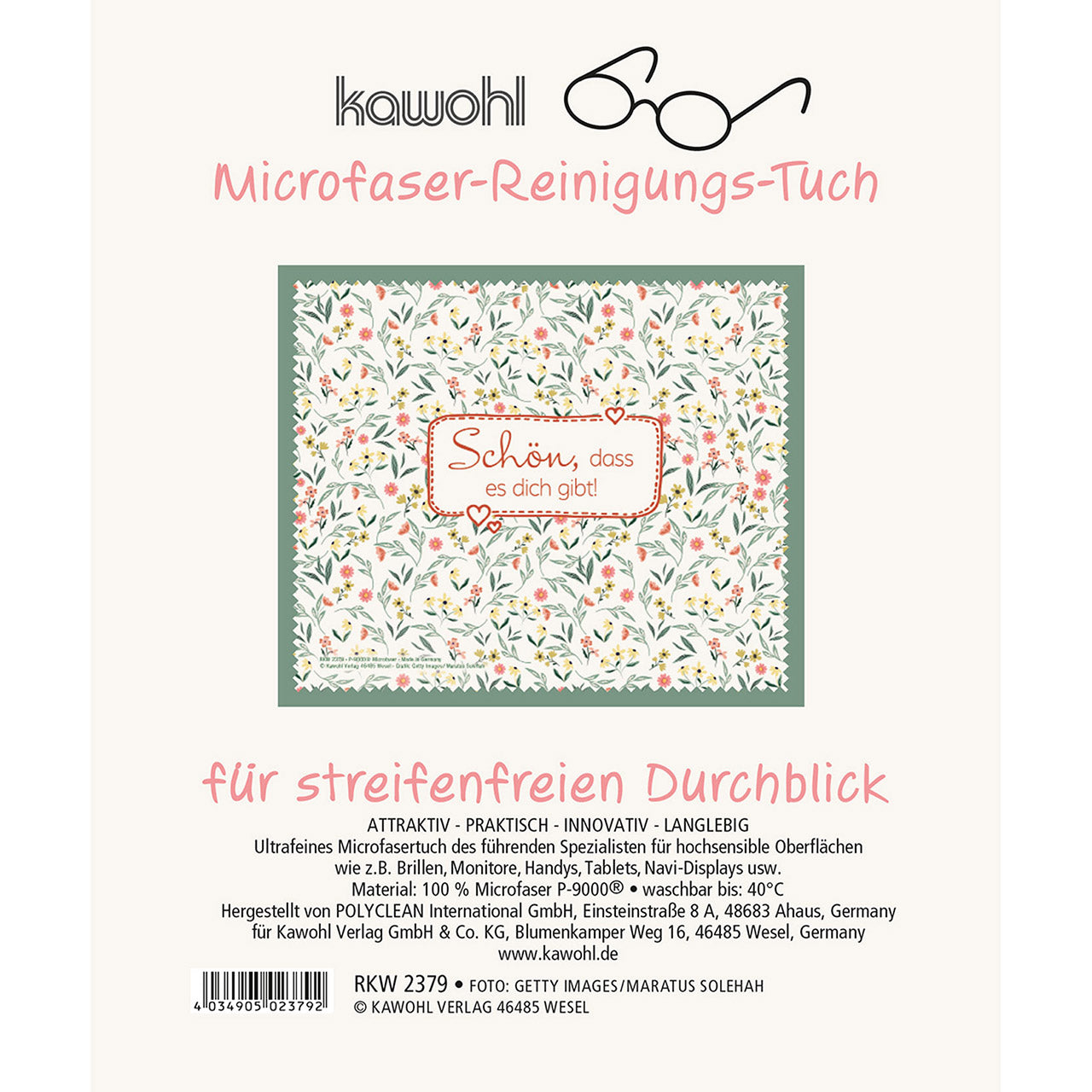 Ultrafeines Microfasertuch des führenden Spezialisten für hochsensible Oberflächen wie z. B. Brillen, Monitore, DigiCams, Handys, Navi-Displays, PDAs usw. mit brillantem Motiv.
