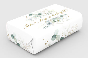 Entdecke die cremige Schafmilchseife mit dem eleganten Text "Schön, dass es dich gibt!".