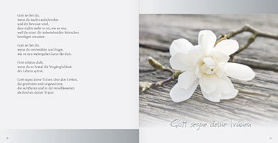 Mit dem Verlust eines geliebten Menschen zu leben, ist unsagbar schwer. Tiefe Traurigkeit und innere Zerrissenheit zermürben. Schenken Sie der trauenden Seele gute, freundliche Worte, die trösten und aufrichten, achten und wertschätzen.