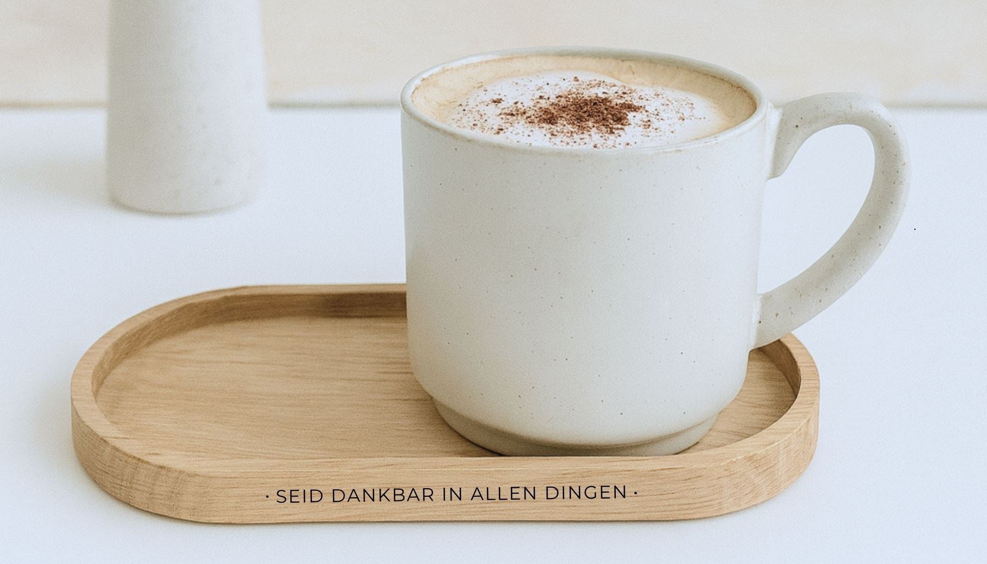 Dezent am Rand eingraviert, erinnert der Schriftzug "Seid dankbar in allen Dingen" daran, im Alltag eine Haltung der Dankbarkeit zu bewahren.