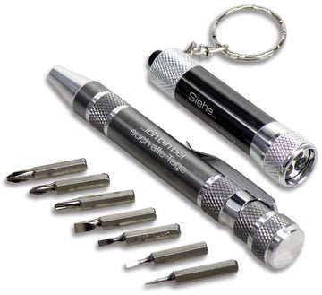 Taschenlampe und Feinbit-Schraubendreher mit 7 Bits in Etui