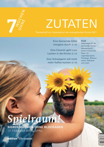 Manchmal stehen wir uns selbst im Weg. Verbeißen uns in Ziele, die schon längst nicht mehr passen. Sehen Mauern da, wo der Weg eigentlich frei ist. Wie wäre es, wenn wir mal mehr spielerische Leichtigkeit ins Leben ließen? Dazu lädt die Fastenaktion 2021 "Spielraum! Sieben Wochen ohne Blockaden" ein. So kann diese besondere Zeit vor Ostern zu einer Entdeckungsreise werden: Wie viel kindliche Unbefangenheit steckt in mir? Was für Träume habe ich - und was hält mich davon ab, sie zu verwirklichen? Eine Fastenaktion voller Freude und Fantasie.
