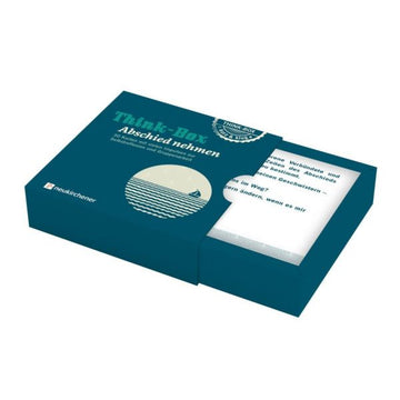 Think-Boxen geben keine fertigen Antworten, sondern stellen die richtigen Fragen - bei dieser Box bewusst aus zwei Perspektiven: Was wünsche ich mir, wenn ich an mein eigenes Sterben denke? Wovor habe ich Angst? Und was wünscht sich wohl der Mensch, den ich in seinen letzten Jahren oder auch Tagen begleite?