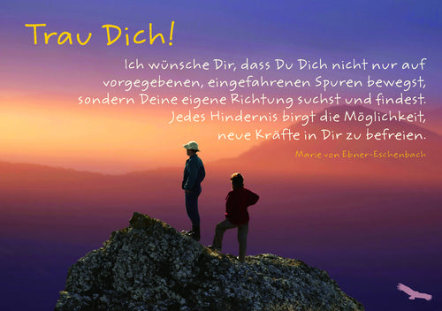 Ich wünsche dir, dass du dich nicht nur auf vorgegebenen, eingefahrenen Spuren bewegst, sondern deine eigene Richtung suchst und findest. Jedes Hindernis birgt die Möglichkeit neue Kräfte in dir zu befreien.