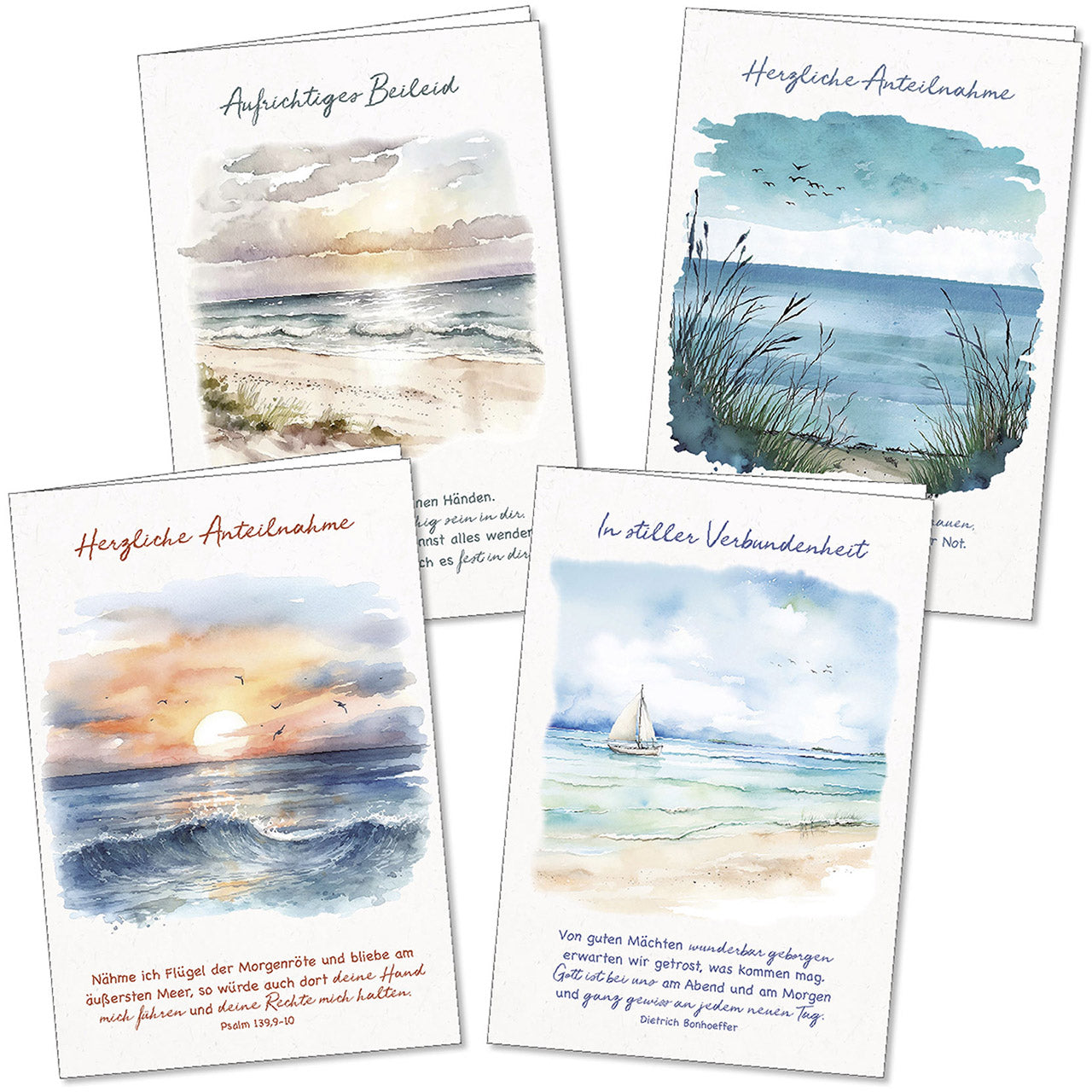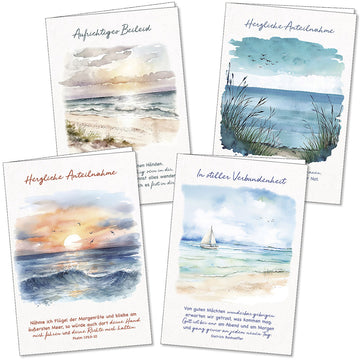 Behutsame und liebevolle Anteilnahme hilft durch die Zeit des Abschiednehmens. Mit diesen Karten zeigen Sie dem Trauernden, dass Sie mitfühlen und an ihn denken. Die sorgsam ausgewählte christliche Botschaft spendet Kraft und Hoffnung.