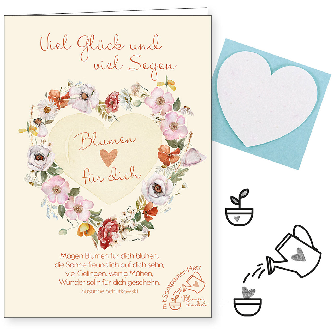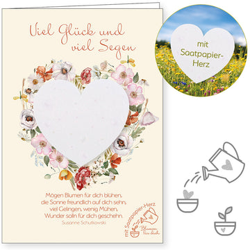 Viel Glück und viel Segen (Faltkarte mit Saatpapierherz)