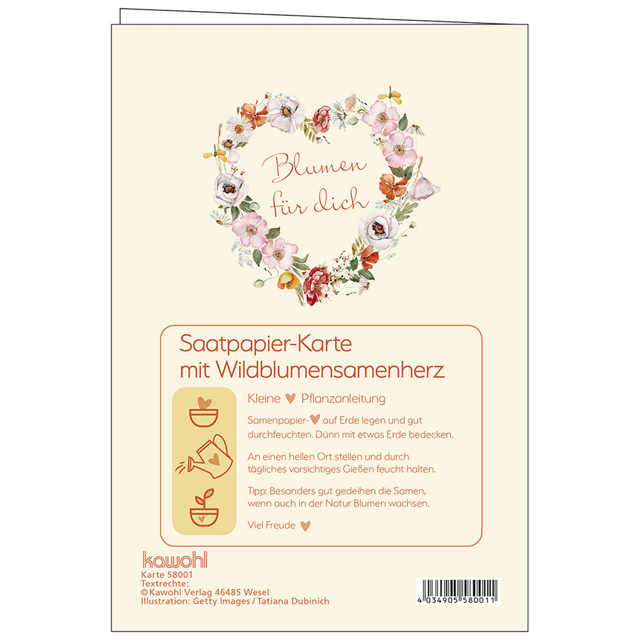 Faltkarte mit Saatpapierherz (Wildblumensamen) und Umschlag.