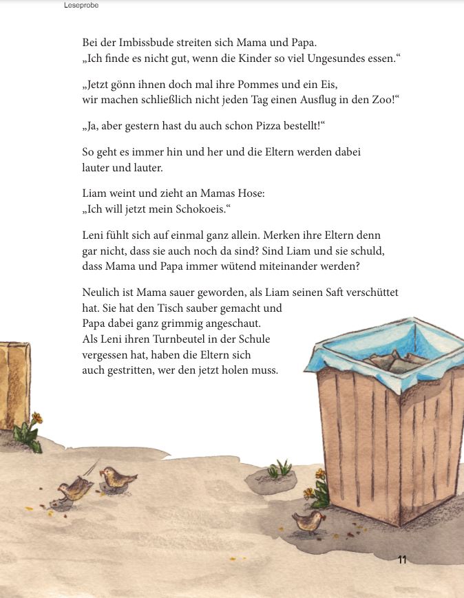Lenis und Liams Eltern streiten sich oft. Leni bekommt dann immer dieses blöde Gefühl im Hals. Ihre Eltern haben sich sogar Hilfe geholt, aber es wird nicht besser. Deshalb zieht Papa in eine eigene Wohnung. Die Geschwister sind traurig und haben viele Fragen: Sind sie etwa schuld? Haben ihre Eltern sie noch lieb? Und kann Leni Papa nicht öfter sehen? Gut, dass sie mit ihren Eltern darüber reden können und auch mit Frau Bremer aus der Kirchengemeinde. Gemeinsam finden sie Wege, wie es allen bald wieder besser geht.