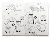 Malheft im DIN A6-Format (10,5x14,8 cm), 12 Seiten, mit kindgerechten Illustrationen zur Weihnachtsgeschichte zum Ausmalen, (Vor-)lesen und Entdecken