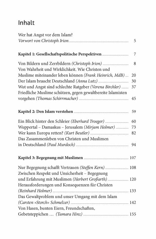 Die Angst vor der Islamisierung treibt Menschen reihenweise auf die Straße. Fast täglich hören wir beängstigende Nachrichten über islamistische Übergriffe in den Medien. Viele sehen sogar den deutschen Rechtsstaat bedroht. Gefährliche Panikmache oder berechtigtes Anliegen? Zwanzig christlich engagierte Autoren ? darunter Islamkenner, Theologen und Politiker ? gehen kompetent auf diese brennenden Fragen ein. Eine wertvolle Hilfe, um sich eine differenzierte Meinung zu bilden.
